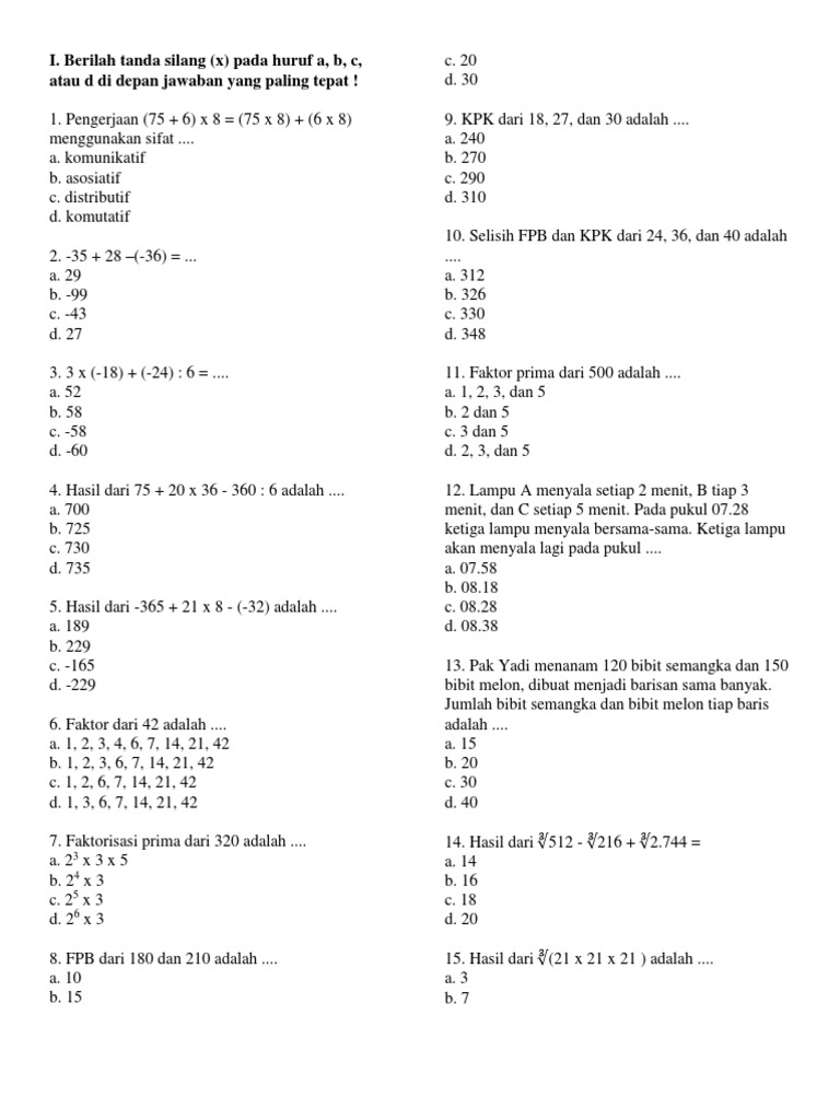 Page 16 Modul 1 Smp Matematika from gredupedia.id Khusus untuk kamu yang masih ada ingat walaupun sedikit tentang pelajaran ini pada artikel ini akan dijabarkan kembali mengenai kpk dan fpb, baik itu dari definisi, cara mencari, serta berbagai contoh soal mengenai kpk dan fpb. 24 2 12 2 6 2 3 3 1 faktorisasi prima dari 24 = 2 x 2 x 2 x 3 = 2 3 x 3 b. Aug 23, 2021 · tentukan fpb dan kpk dari bilangan berikut ini! Contoh soal cerita kpk dan fpb kelas 6 beserta jawabannya. 100 2 x 2 x 5 x 5. Kita pilih, yang memiliki pangkat lebih kecil, yaitu $2^2$ dan $3$. Fpb dan kpk dari 40, 60, dan 120 150 2 75 3 25 5 5 5 1 faktorisasi prima dari 150 = 2 x 3 x 5 x 5 = 2 x 3 x 5 2 latihan 1.