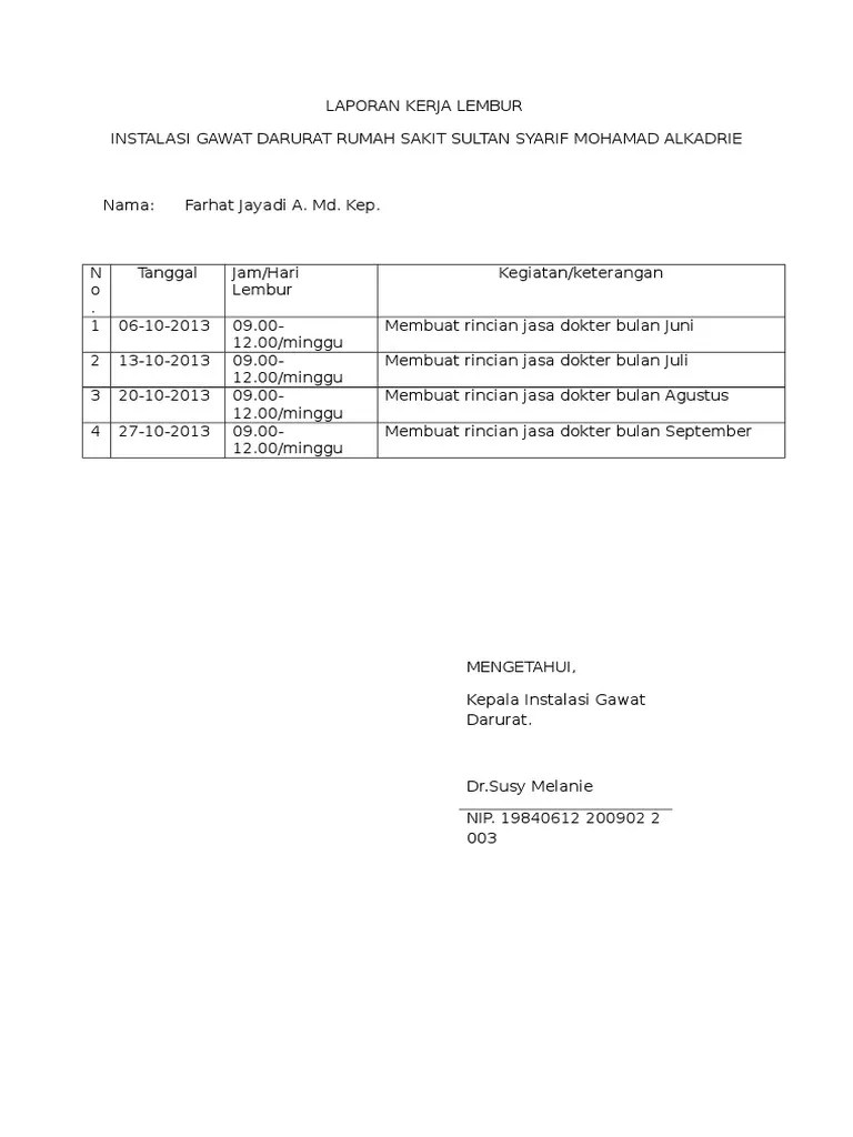 Laporan ini sebagai hasil pertanggungjawaban praktikan selama. Pengambilan lembur karyawan, kebijakan pengambilan cuti karyawan, kebijakan. Tersusun dan terlaksananya rka apbd. Template reimburse dinas luar kota; Laporan kerja lembur kepala igd.